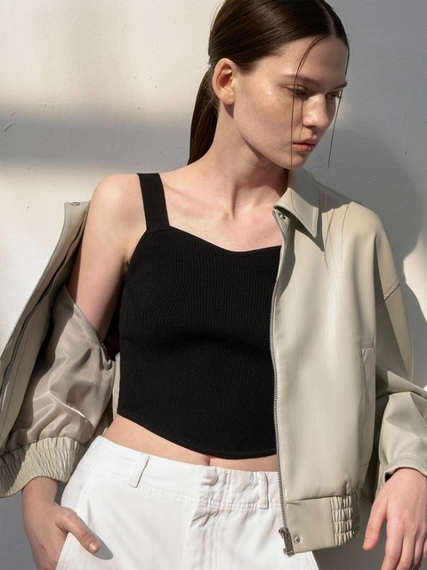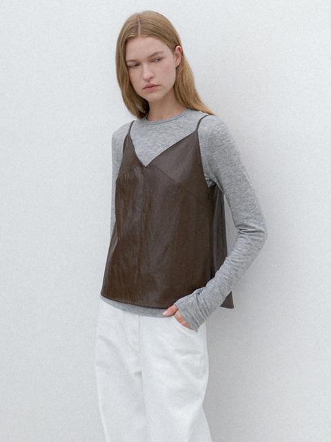 [아틀리에 나인] 브이넥 슬리브리스 레더 블라우스(BL-4350)