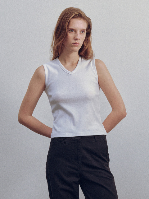 [낫띵리튼] 나인티즈 브이넥 슬리브리스 탑 (화이트)