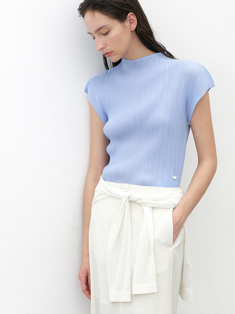 [아틀리에 나인] 플리츠 모크넥 슬리브리스 탑(BL-4339)