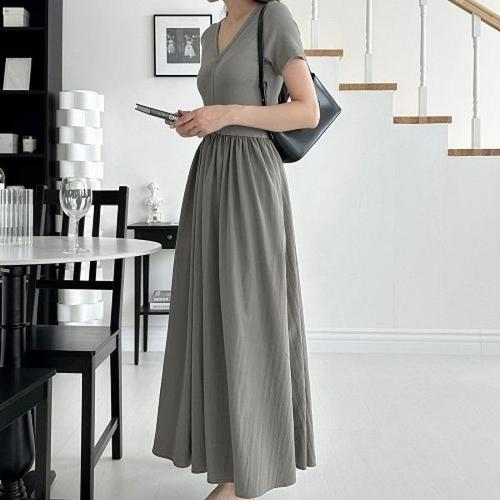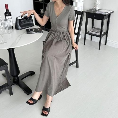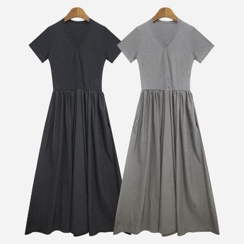 [엄지척]여성 편안한 브이넥 나일론 여름 반팔 원피스_19912174_667501