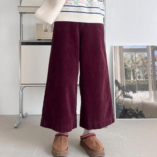 [다잇템][다잇템] 여자 와이드핏 나팔 와인색 골덴팬츠 백밴딩 바지_24000011_588872