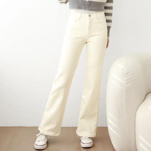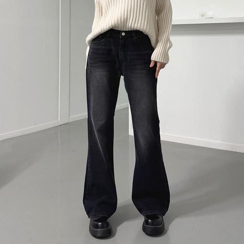 여자 논스판 캣워싱 면원단 나팔 청바지