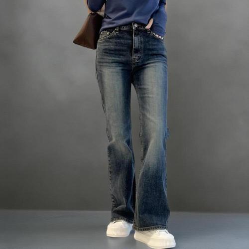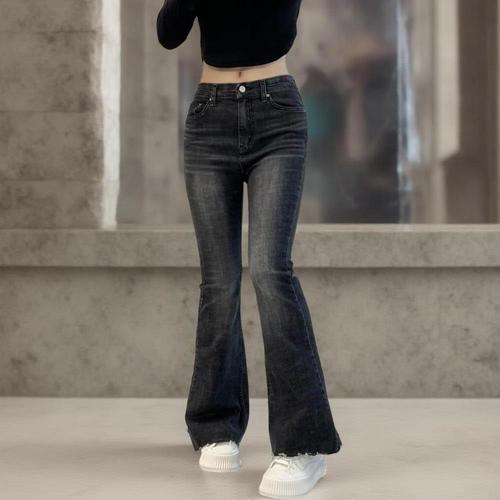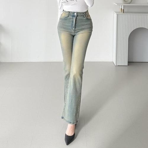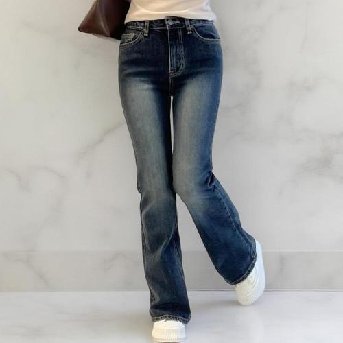 [다잇템]여자 로우라이즈 슬림핏 워싱 나팔 골반 청바지