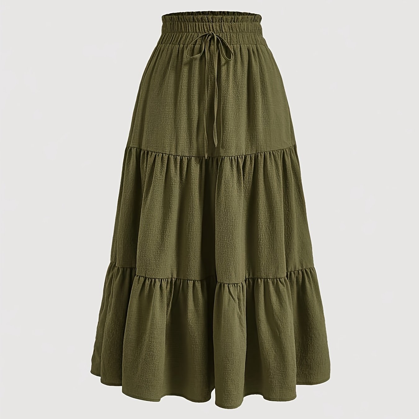 TEMU 여성용 단색 하프 스커트, 끈과 러플이 있는 신축성 밑단, 롱 레귤러 스타일