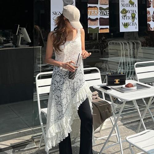 [난닝구]키펠드 나시원피스브이넥니트세트