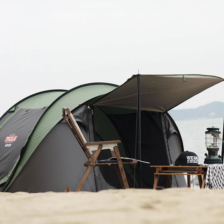 TEMU 4인 가족 캠핑 텐트 - 자동 빠른 세팅, 내구성 있는 옥스포드 원단과 통기성 메쉬, 해변, 낚시 및 하이킹 여행용 휴대용, 라이트 브라운, 캠핑 텐트, 하이킹 장비, 자연적인 배경, 튼튼한 막대 지원|텐트