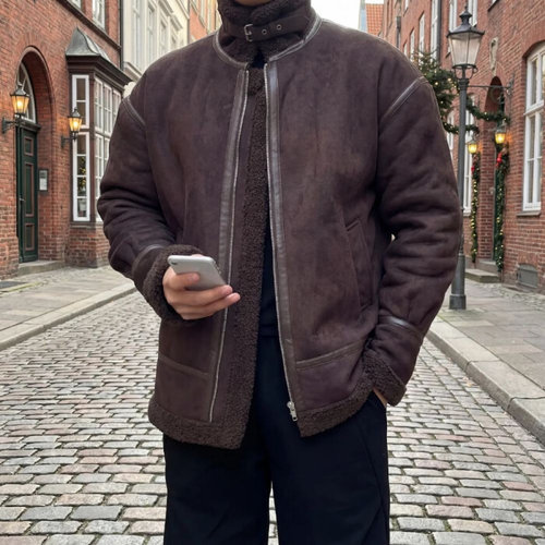 [바쏘]남자 다크브라운 양가죽 배색 무스탕 점퍼 WSARZ4UA46A