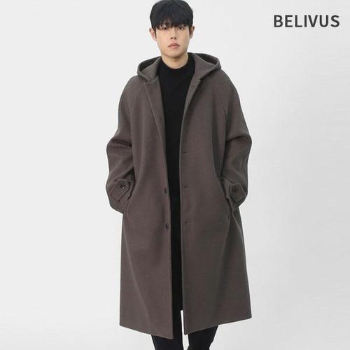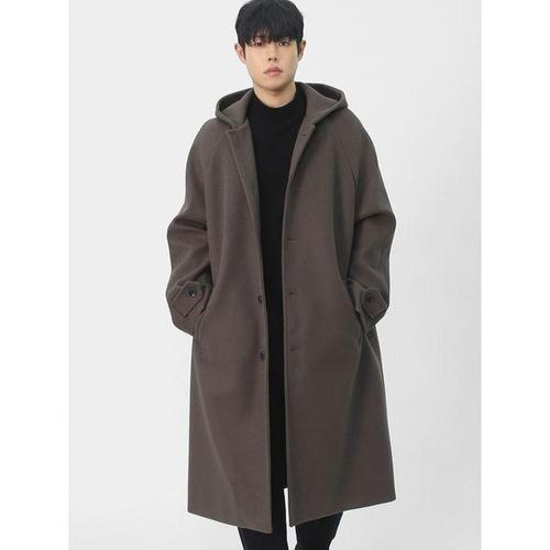 [빌리버스]남성 간절기 레글런 실루엣 발마칸 울혼방 톤다운 롱 후드 코트 BAZ002