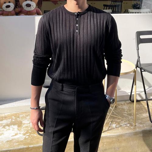 [쿼터]실크 골지 헨리넥 니트티 3color