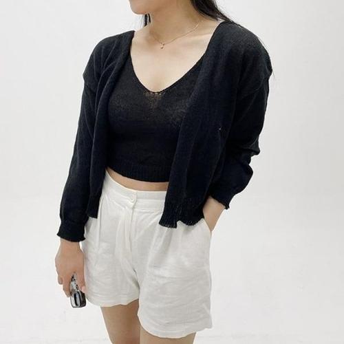 [엄지척]긴팔 가디건 니트 데일리 나시 여름 데일리 크롭 세트_19874302_667501