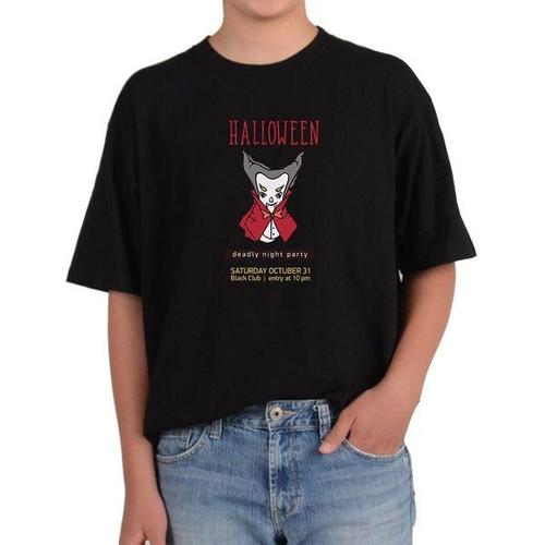 [에이치플러스몰]길단 반팔 USA핏 할로윈 저녁파티 드라큘라 시간 HALLOWEEN그림 다양한색상 전사이즈