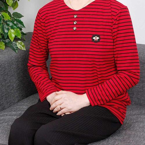 봄가을 루즈핏 캐주얼 스타일 스트라이프 긴팔티셔츠 WE1698F