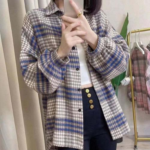[셀럽하우스]모직 RBZN7670 루즈핏 기모 남방 셔츠 오버핏 체크 간절기 겨울