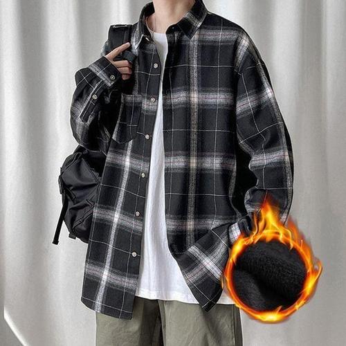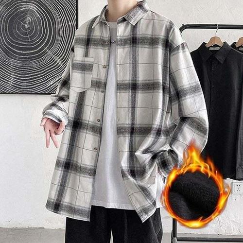 [셀럽하우스]남성 XBUE8336 방한 루즈핏 스타일 기모 겨울 체크 남방 IS-JK7