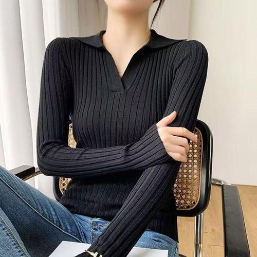 어셩 브이넥 슬림핏 카라 긴팔티셔츠 목이길어보이는 WD88DE8