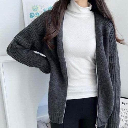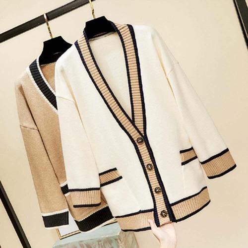 니트가디건 2단골지 F007577_베이직 브이넥 루즈핏