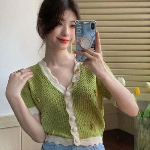 [셀럽하우스]가디건 EJQP9315 숏 미니 니트 니트가디건 7부소매 코트 얇은