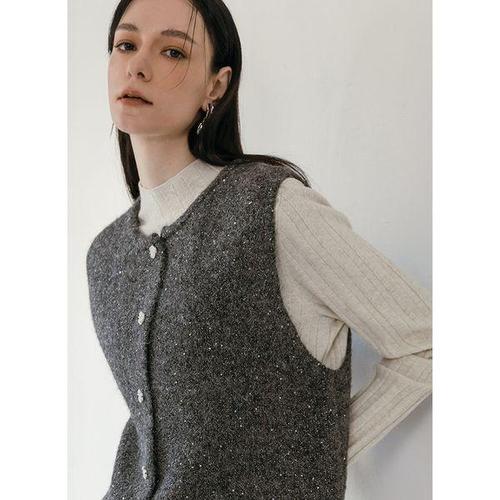 [막스까르띠지오]메탈 텍스쳐 라운드 니트 베스트