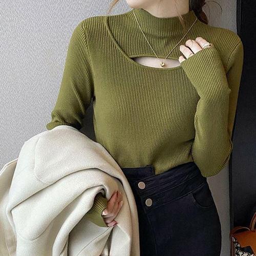 (스타일하우스) 니트티 스웨터 티셔츠 니트 터틀넥 반폴라 잔솔 골지 니트티 트임 반목폴라
