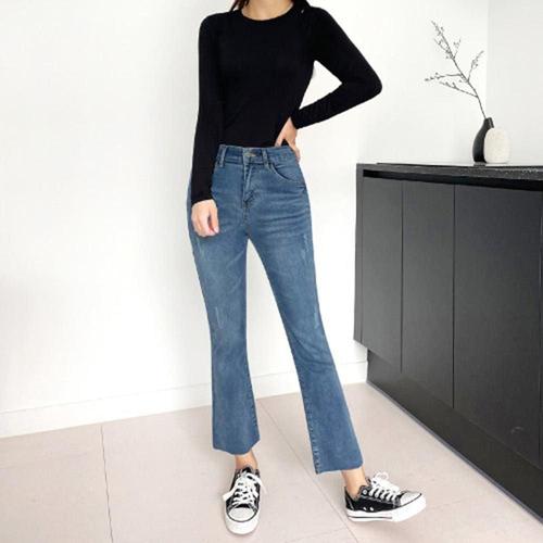[에이치플러스몰]스판밴드밑단헤짐부츠컷청바지 너로 부츠컷청바지 나