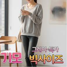 러브포텐 빅사이즈 기모 브이넥티셔츠 [그레이 단품 특가] 오버핏/큰언니/66~99가능/속기모
