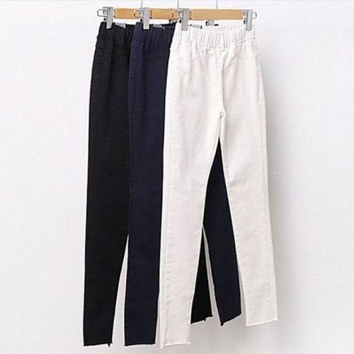 [에이치플러스몰]허리밴딩 하의 워싱스키니 일자면바지 베이직 스판 슬
