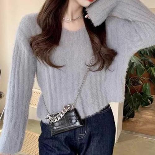 [에이치플러스몰]부드러운 앙고라 크롭 니트 겨울 따뜻이너
