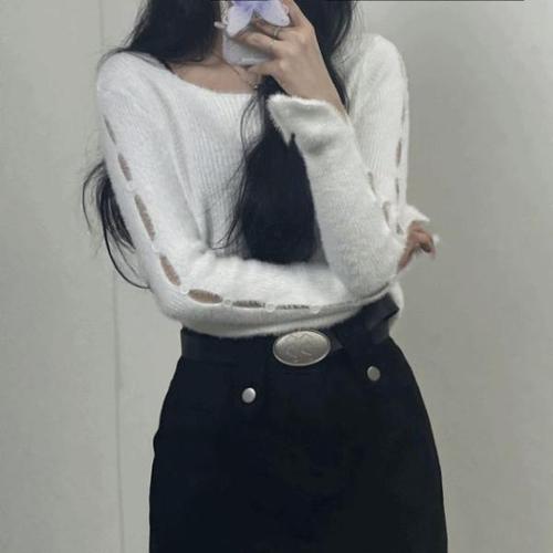 앙고라 BZ56XZ24 사이드 암 포인트 크롭 긴팔 니트 3color