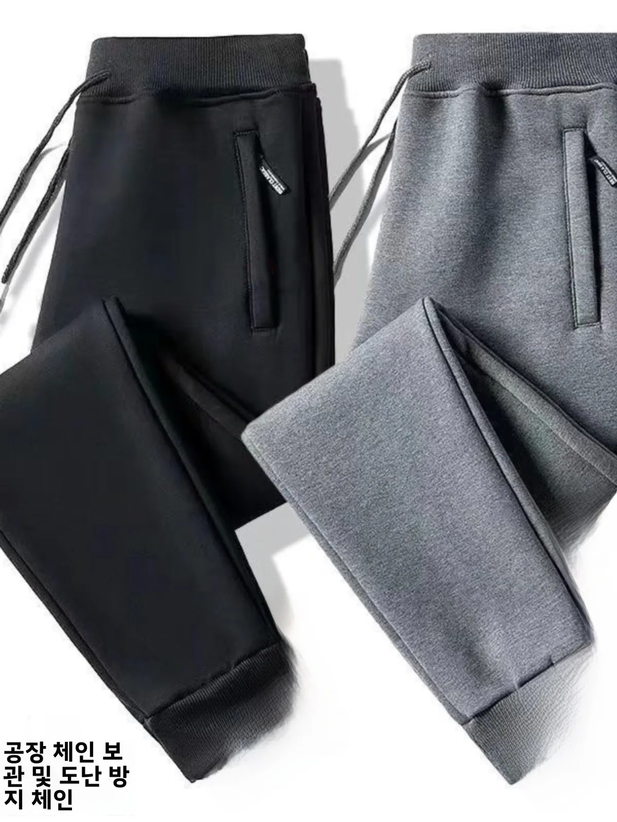 남성용 겨울 기모 안감 캐주얼 팬츠 루즈핏 스포티 젊은 스타일 중간 허리 긴 바지 발목 커프스 디자인