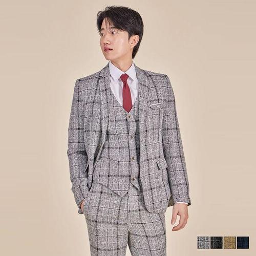 [지앤제이]댄디 체크 남자 자켓 조끼 바지 정장세트(4color) 교