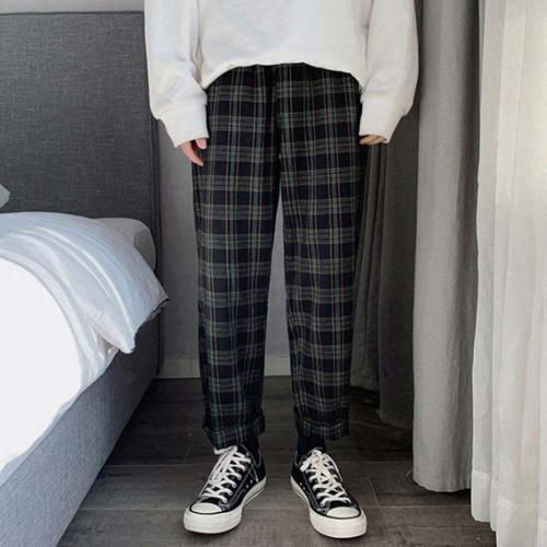 [셀럽하우스]일자 GCIK3833 밴딩 체크바지 통바지 편한 팬츠 남녀 울