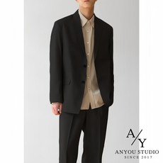 ANYOU 남성용 사계절 캐주얼 정장 데일리 기본핏 검정정장 경량 사계절 슬림핏 수트 자켓 코트