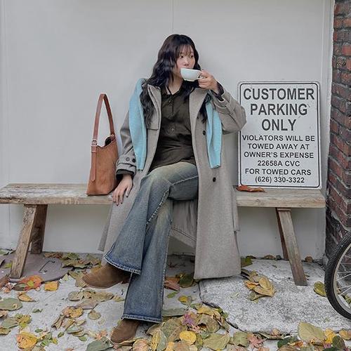 [이블렛 by 제이스타일]이블렛 노아뮤 벨트SET 울 언발 트렌치 롱 코트 제이스타일