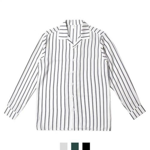 [옷자락]남성 오버핏 오픈카라 파자마 줄무늬 셔츠