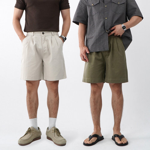 오엔엘 / 1 + 1 핀턱 밴딩 남자버뮤다팬츠 6부반바지 치노팬츠