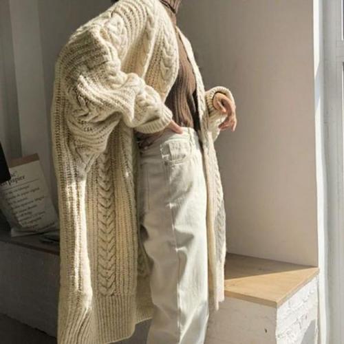 소프트 꽈배기 오버핏 니트 가디건 FL045)