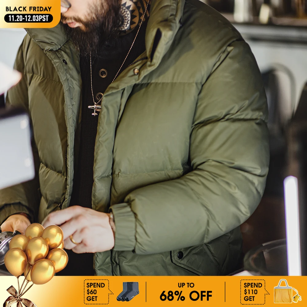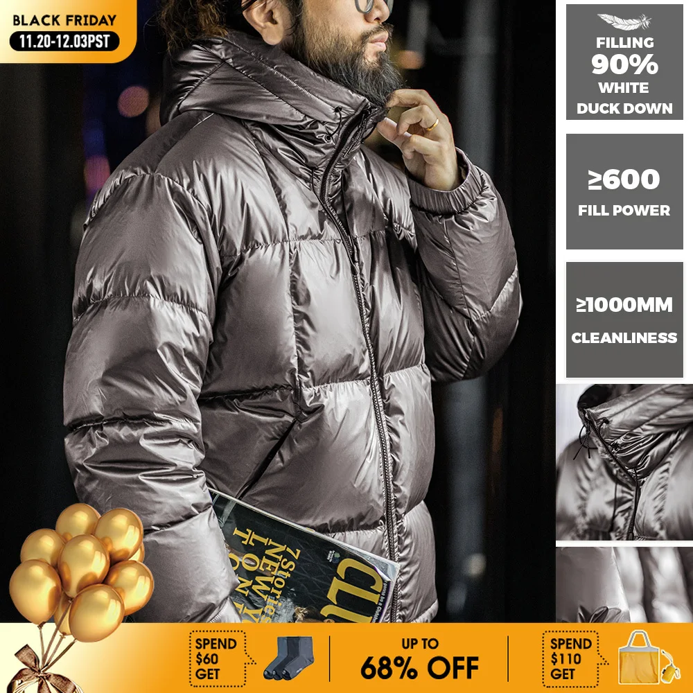 Maden 남성용 캐주얼 광택 후드 90% 화이트 덕 다운 재킷, 따뜻한 스탠드업 칼라 퍼퍼, 다목적 단색 코트, 겨울