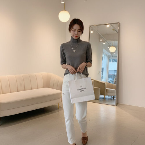 슈팅스타 / 모던하고 세련된 실루엣 반팔 터틀넥 니트