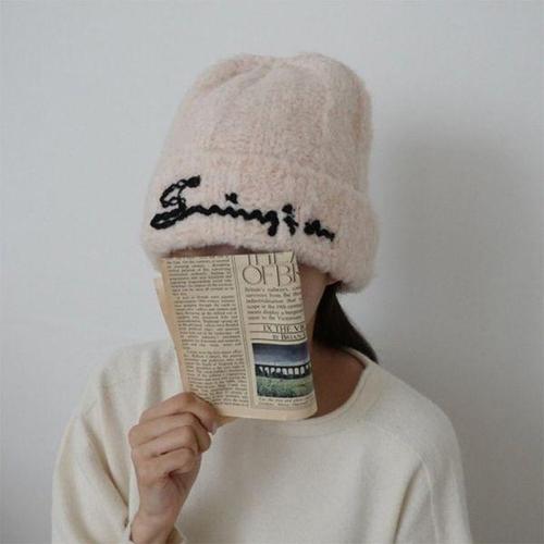 [다잇템]여성 필기체 비니 스웨터 엷은 울 남성용 모자
