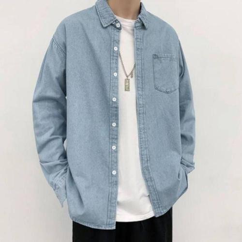 스타일닥터 남성 데님셔츠 오버핏 워싱 청남방 투포켓 긴팔 루즈핏 자켓 캐주얼 데님 코트