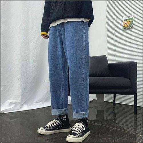 [에이치플러스몰]캐주얼 남자 데님 롤업 청바지 밴딩 스트레이트핏