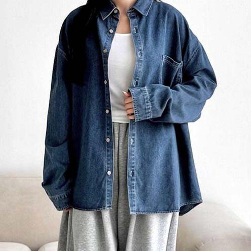 남녀공용 커플 오버핏 박시핏 데님 청남방 데일리 캐주얼 패션 셔츠 WFL0M59