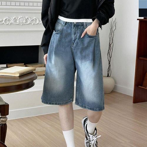 2025 새로운 한국어 스타일 빈티지 남성 청바지 여름 느슨한 남성 넓은 다리 무릎 길이 반바지 새로운 씻어 패션 짧은 데님 바지