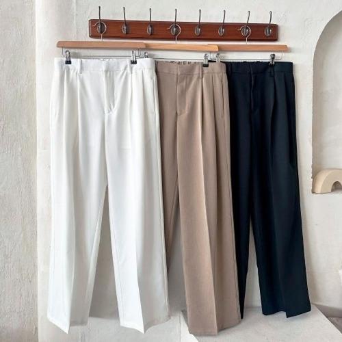 [다잇템][다잇템] 남성 출근 투턱 와이드핏 스타일 SS 하객용 백밴딩 슬랙스_24765448_588872
