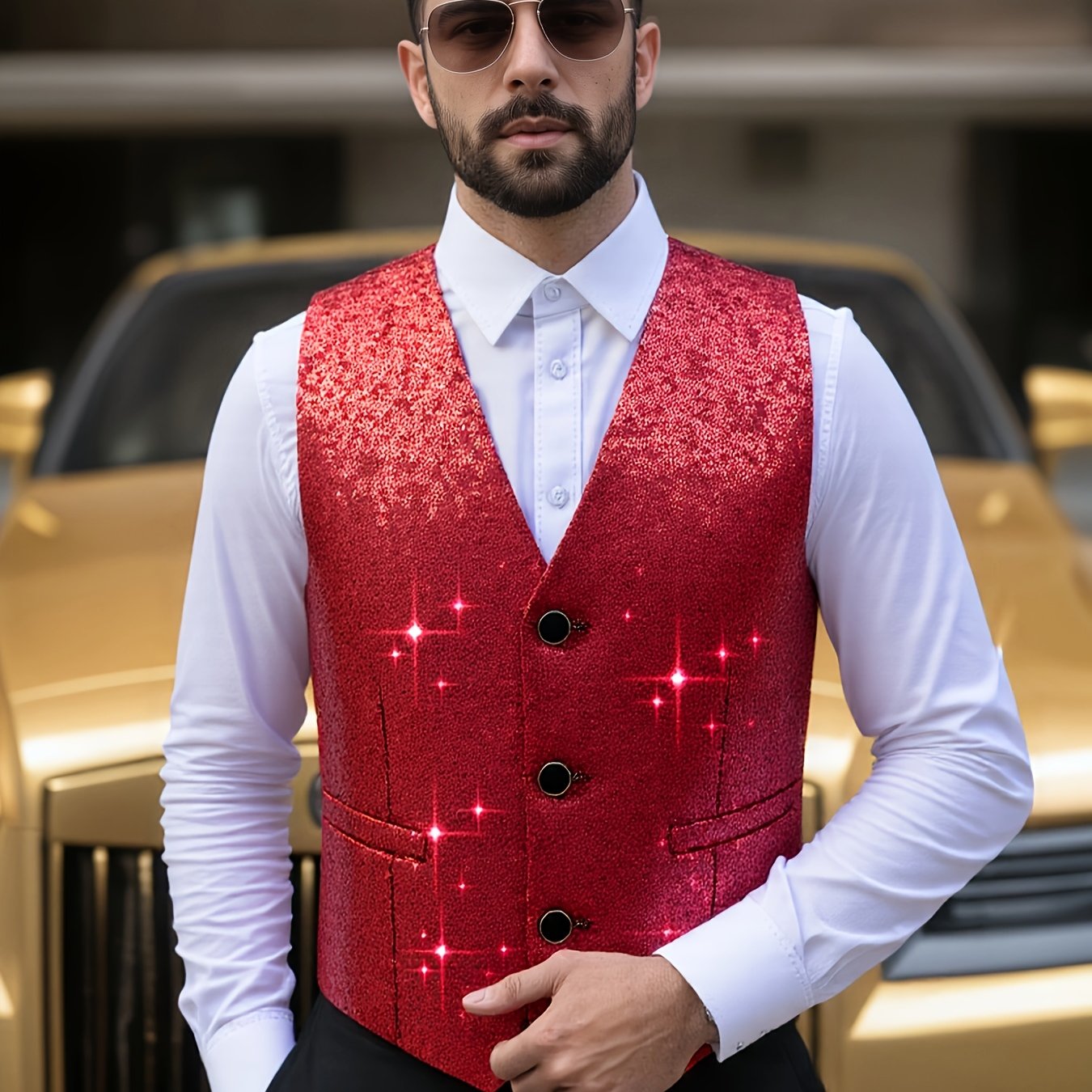 TEMU 남성용 무대 공연 의상, 반짝이는 스팽글 조끼, 사진 촬영, MC, 가수, 진행자에게 적합.