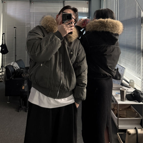[원스톤]원스톤 아크틱 라쿤 퍼 후드 점퍼 1color 오버핏 따뜻한 한겨울 패딩 자켓 커플룩 코트