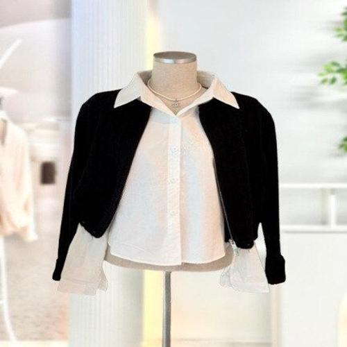 [스타일리쉬바이피클]레이어드 카라 셔츠 니트 집업 세트
