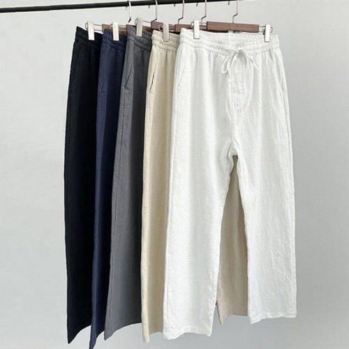 남성용 코튼 린넨 바지, 캐주얼 단색, 통기성 스트리트웨어, 느슨한 스트레이트 드로스트링, 헐렁한 경량 스포츠 바지, 신상