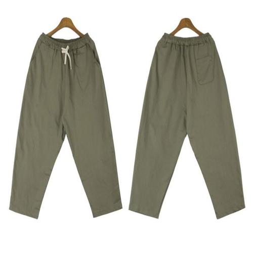 팬츠 면 캐주얼 남자바지 면린넨 혼방 반밴딩 배기팬츠 루프일자 와이드 영속감 배기 원템1