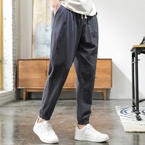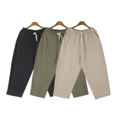 9부 배기팬츠 남성 3컬러 허리밴딩 린넨 일자팬츠